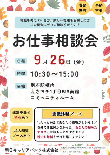 ★9/26(金)【別府市】お仕事相談会を開催します!〈※終了〉